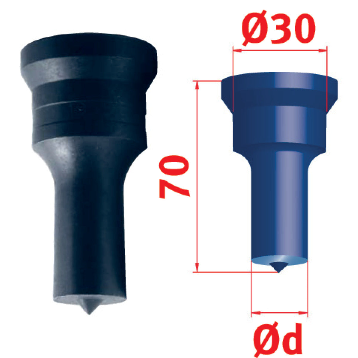 Beispiel: Stempel-Ø 15 mm und Materialstärke 10 mm = Matrizen-Ø 16,2 mm